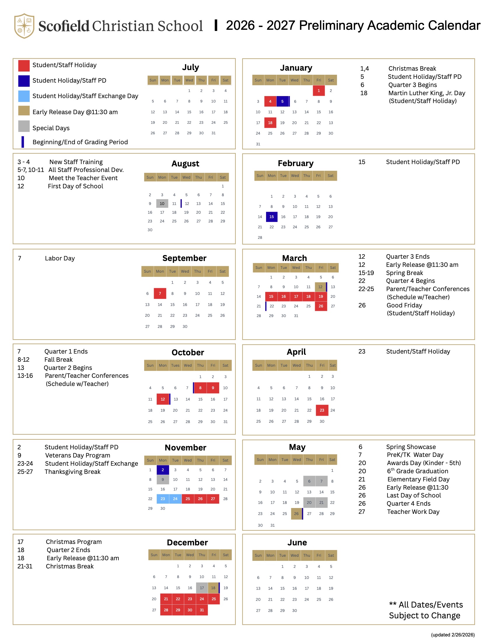 Academic Calendar